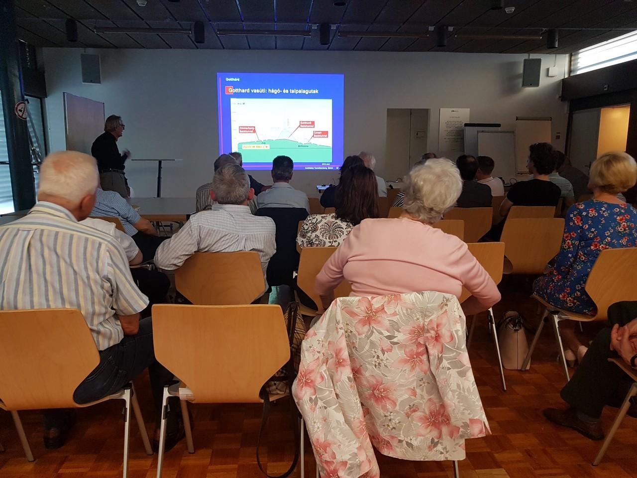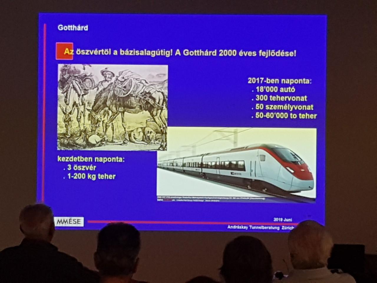 Az europai észak-déli összeköttetés az alpokon vezet át. A svájci átkelők között a Gotthárd a legfontosabb. Mint ahogy a talált régészeti tárgyak bizonyítják, a rómaik is használták ezt a tengelyt. A 16. Században már évenként 1500 tonna árú jutott át a Gotthárdon. A teherforgalom és a túrizmus felvirágzása és fejlődése miatt a 19-21 században egyre nagyobb kapacitást kellett biztosítani a szeméy- és teherforgalomnak. Az előadás bemutatja ennek a fejlődésnek a „mérföldkőveit“.