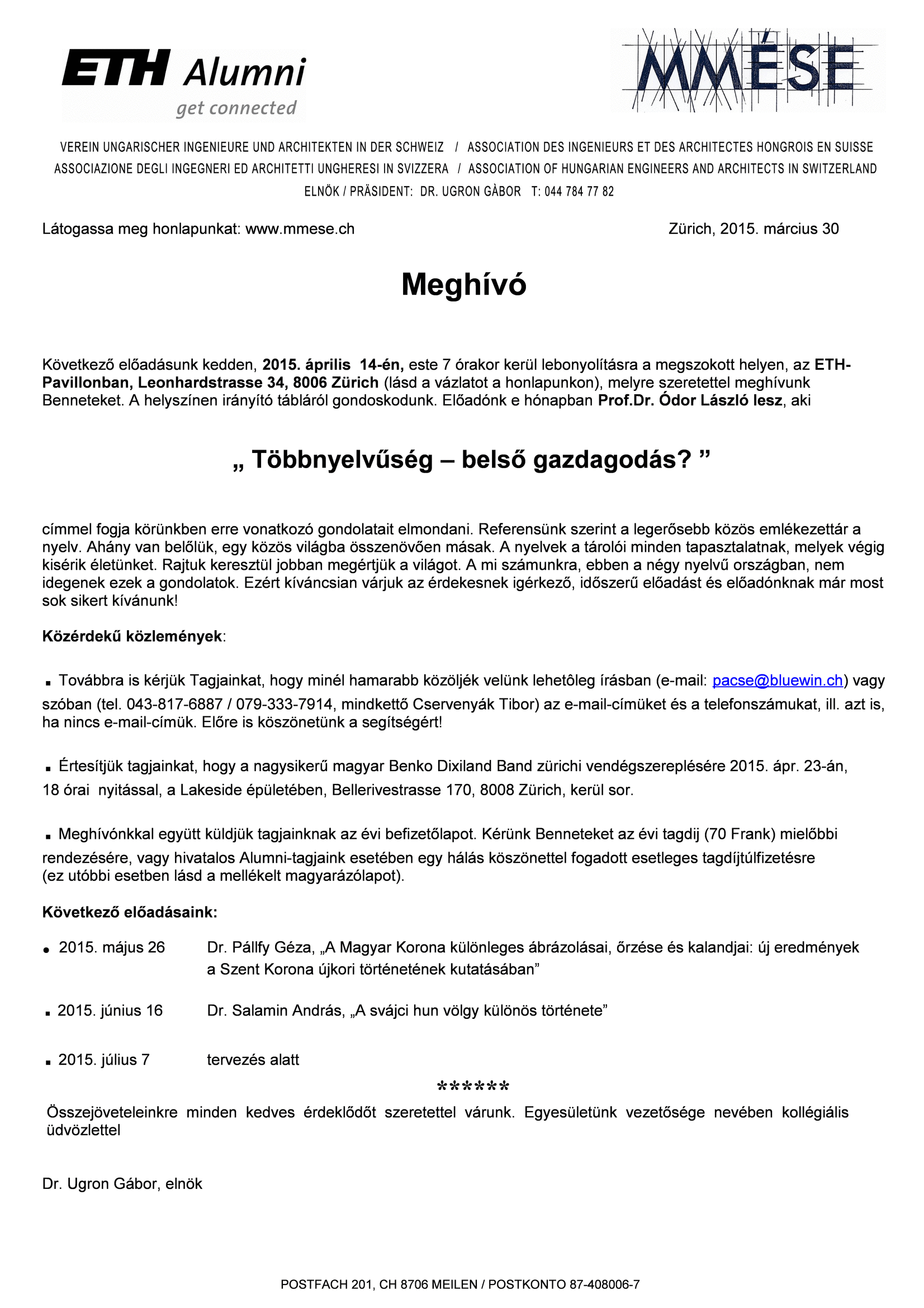 Előadó Prof. Dr. Ódor László További képekért kattintson a képre! 2015. április 14. Meghívó Prof. Dr. Ódor László előadására